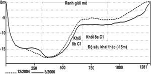 về một phía bờ đã tạo thành những mỏ