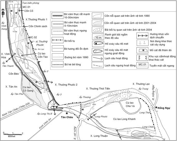 xói lở mạnh là các đoạn Tân Châu, Hồng Ngự,